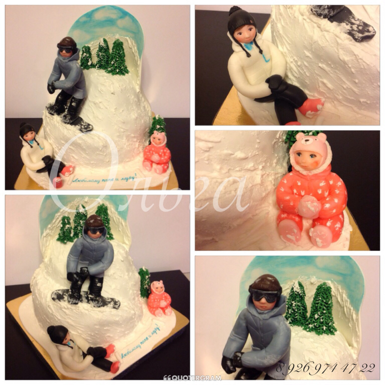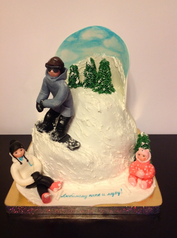 Торты для мужчинТорт для сноубордиста, который очень любит своих жену и дочку