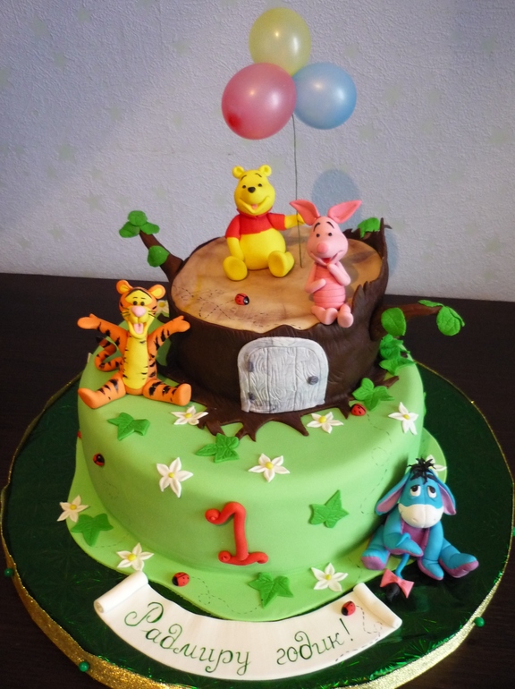 Винни Пух и все-все-все) Вес 3,500 (нижний ярус: сливочно-творожный с персиками, в пенёчке-шоколадны
