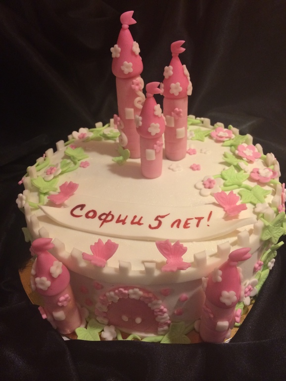 Такой мило-девчачий тортик) Мне очень сочетание цветов нравится и башенки кукольные) Вот если когда-нибудь к тортам вернусь,попробую такой же сделать для крестницы сына. Оль,а вес у него ведь небольшой,да? Он таким нежно-миниатюрным смотрится)