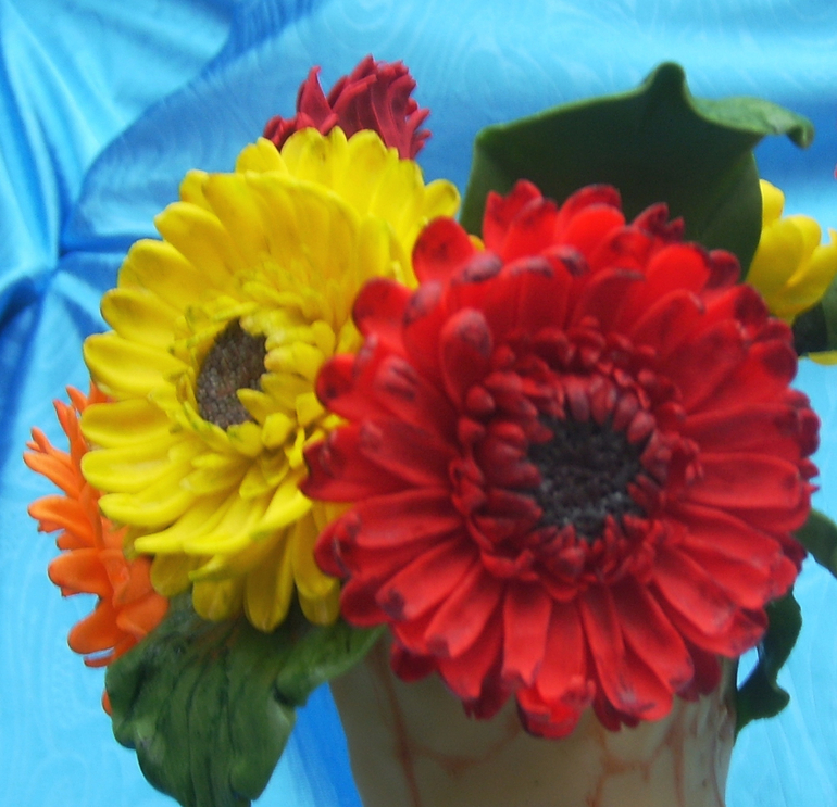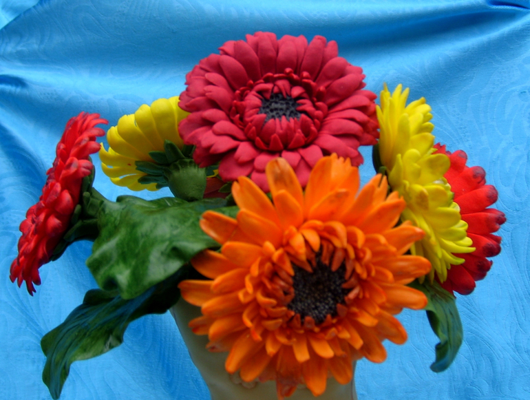 спасибо, Ольга. Очень приятно. Особенно с учетом двух "навернувшихся" насмерть цветов)..  и  ещё двух, поврежденных при сборке в вазу (желтый и оранжевый), которые реставрировались уже постфактум (т.е. после установки на место постоянной дислокации — в вазу).. ну и до кучи вазу помяла)).. а она изначально прям такая ровная была, что даже мне понравилась).. не декором, нет (он очень простенький, ибо заказы дешевые), а именно  формой и обтяжкой