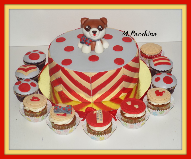Оформление торта под платье именинницы и под топпер в торт с именем и единичкой.Оформление боковин и собачка по картинке.
