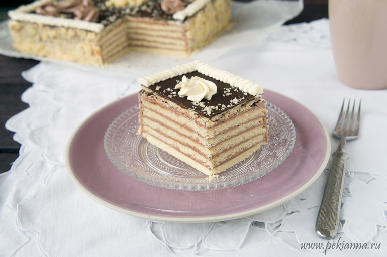 Тот самый, Ленинградский торт:) Только в основе крема не маргарин, а вкуснейшее сливочное масло и вместо глазури с какао, горький шоколад!