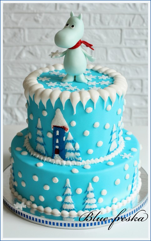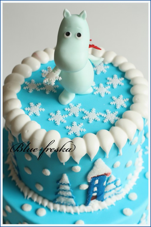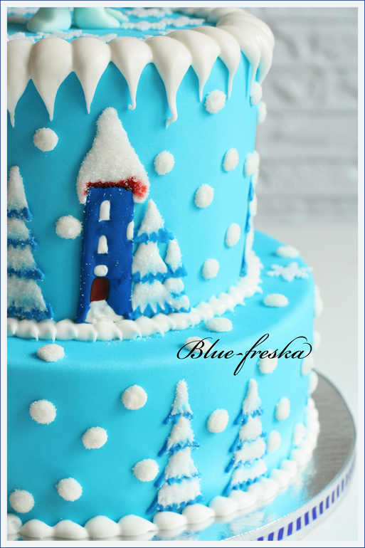 Айсинговые феи, я преклоняюсь перед вами!!! Мне хотелось сугробов, таких мягких, пушистых(сказывается нехватка снега на улице:)), ходила вокруг торта часа два...мыла посуду, кормила кота, загружала стиралку, всё что угодно...никак не могла осмелиться). Потом взяла кастрюлю, перевернула и начала на ней тренироваться))), побоялась устроить айсинговый хаос, вместо снежного, поэтому меня хватило вот на такие сосули лаконичные))