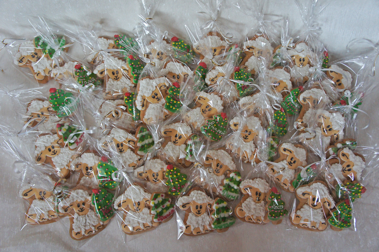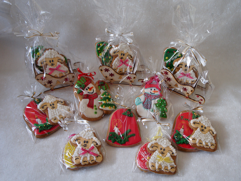 Печенье,пирожные,конфеты, выпечкаНаш дом снова наполнился ароматом корицы и имбиря. Люблю расписывать прянички: фантазировать, экспериментировать с цветом, узором, не торопясь, наслаждаясь процессом и результатом. Но в этот раз была совсем другая история))) На помощь мне пришла моя любимая сестренка Kelly . Вместе веселее и быстрее))) Не смотря на ограничения по времени, мы получили огромное удовольствие от проделанной работы. А это результаты нашего совместного творчества- новогодние пряничные наборы:
