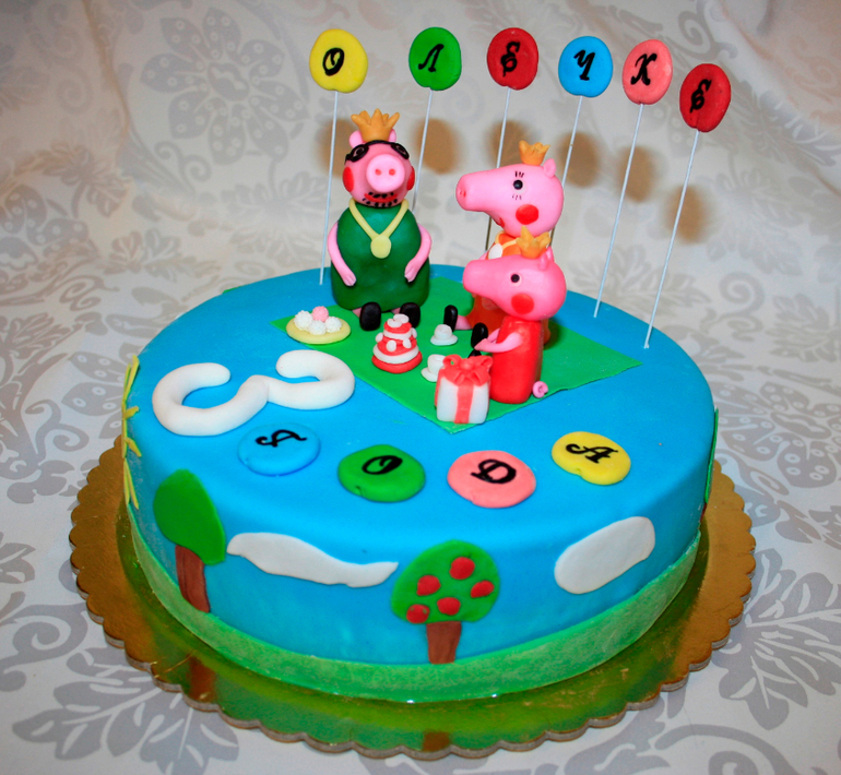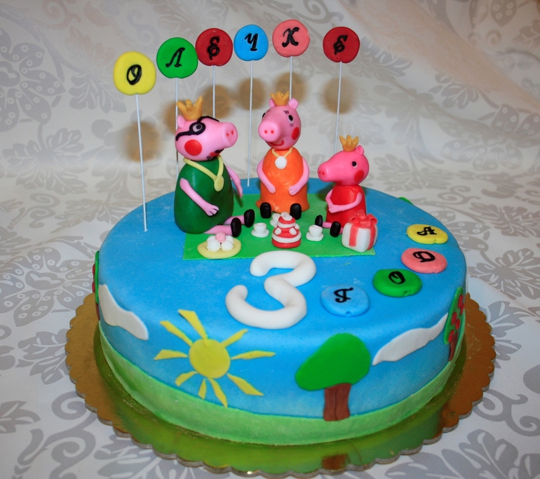 Торты детскиеОна конечно не сильно похожа на оригинал, но и не было такой задачи, это моя вариация Пеппы и ее семьи))