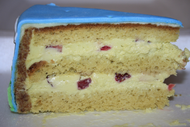 Внутри фисташковый бисквит, ванильная пропитка, фисташковый крем со свежей клубникой. 2,5 кг