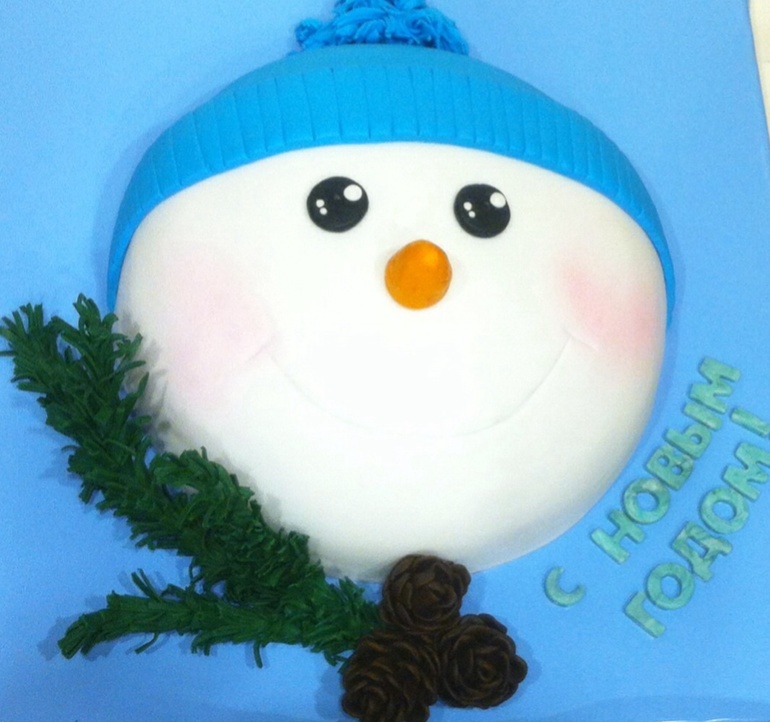 Торты тематическиеВот и мне довелось сделать такого снеговичка. Спасибо автору дизайна!! Вес 3,3 кг, внутри молочная девочка с коктейльной вишенкой, абрикосом и ананасом.