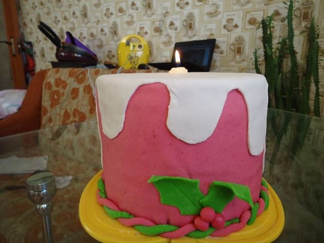 Ну и наконец-то последний. Свечку на Рождество лепила. Краситель у меня плохой, не красный, а розовый.