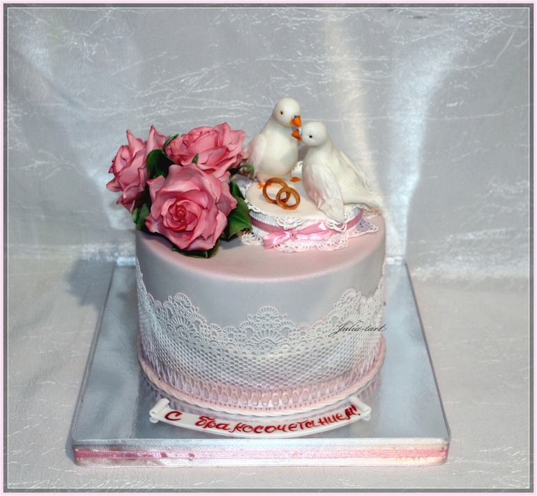 Торты свадебныеЭтим небольшим свадебным тортом закончился теперь уже прошлый год.. Кто то ведь и расписывается 31 декабря)))