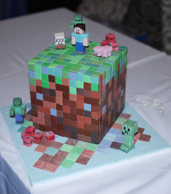 Торты тематическиеЭтот торт делала на пятилетие сына в прошлом году. Большой он поклонник этой игры.При скромных достаточно размерах (грань 20х20 см) этот тортомонстрик вышел на 6кг. Подставка и некоторые фигурки ещё белёсые от крахмала, это я черновой вариант тортика собрала быстренько, чтобы успеть хоть какие-то фото сделать, поэтому тапками сильно не забрасывайте!))