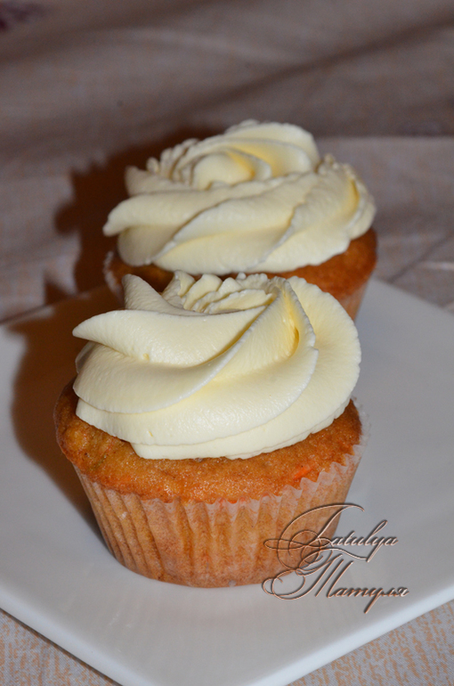 Капкейки и КейкпопсыМорковные капы с изюмом и шапочкой из сырного крема