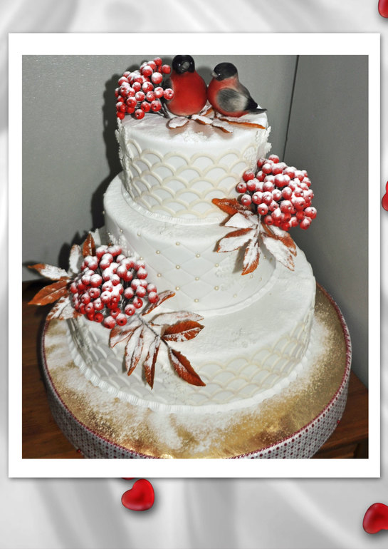 Свадебный торт со снегирями!