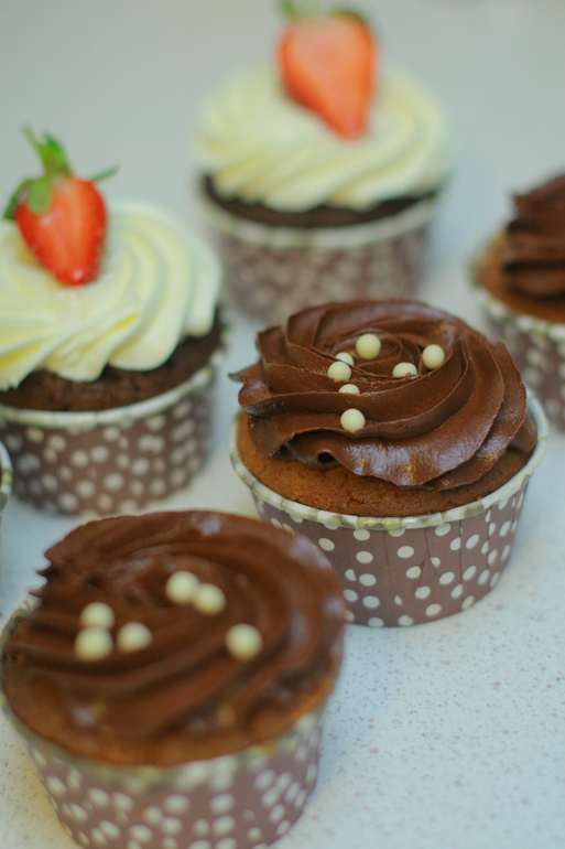 Капкейки и КейкпопсыСегодня были вот такое шоколадные капкейки с черной смородиной и сырным кремом и белые с ванилью, ежевичным мармеладом и шоколадно-шоколадным кремом. Почти гигантские получились в этих формочках.