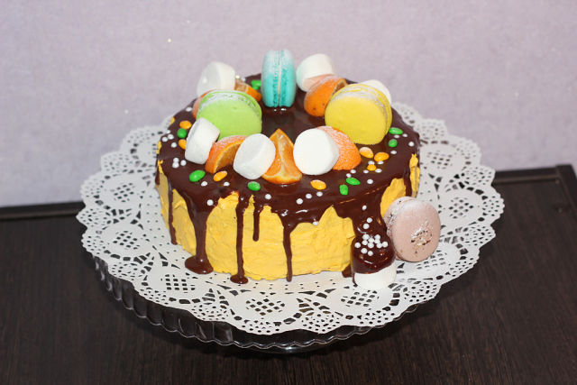 Очень красивый тортик. Подскажите а чем покрывали.? А зефирки и макарони тоже сами?