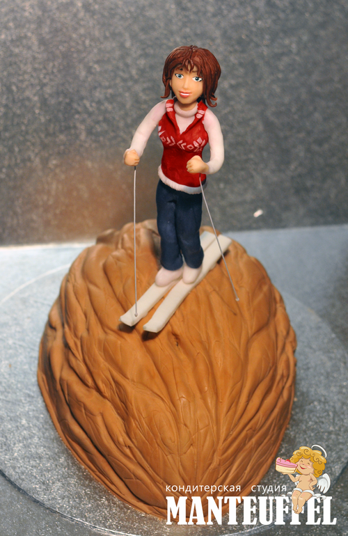 насколько я поняла именинница очень любит грецкие орехи и кататься на лыжах, поэтому ее муж решил ее покатать на орехе =))