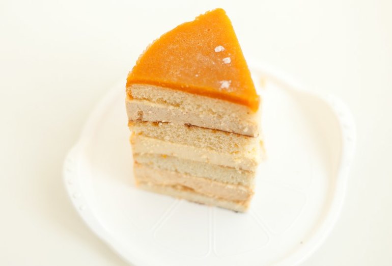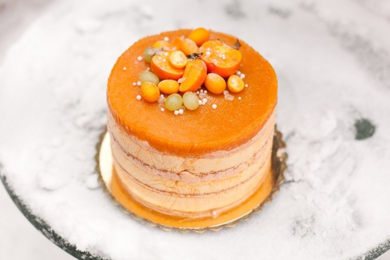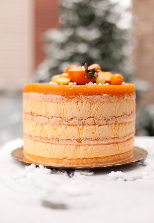 Высота торта 16 см,вес больше 5 кг. Ванильный бисквит, муссы из хурмы и апельсина,сверху желе из хурмы.Взвесить точно
