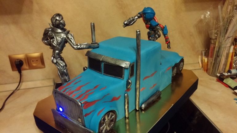 Торт весит 11 кг. Фигурки - 25-30 см высотой. Машина - пол-метра длиной ) Из разряда срочных тортов. Совместная работа с Юлей Соловых.