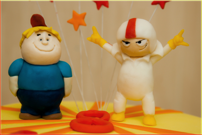 ВОПРОСЫ кондитеровЗдравствуйте! Сыну в феврале будет 13. Думается мне, что это последний день рождения, когда его еще интересуют мультфильмы. Пока он обожает мульт "Кик Бутовски", поэтому я хотела сделать фигурку персонажа на торт, но в инете МК не нашла.Эту картинку я скопировала еще год назад у кого-то с ББ, но сейчас найти не могу. Еще в прошлом году хотела попробовать сделать, но не было времени. В теории представляю,как слепить мальчугана в белом костюме, но его каска вводит в ступор. Опыта у меня особо нет, редко что-то делаю для домашних из мастики. Лепешка , обрезанный шарик.... Вообще никаких идей,КАК сделать... Буду очень и очень благодарна