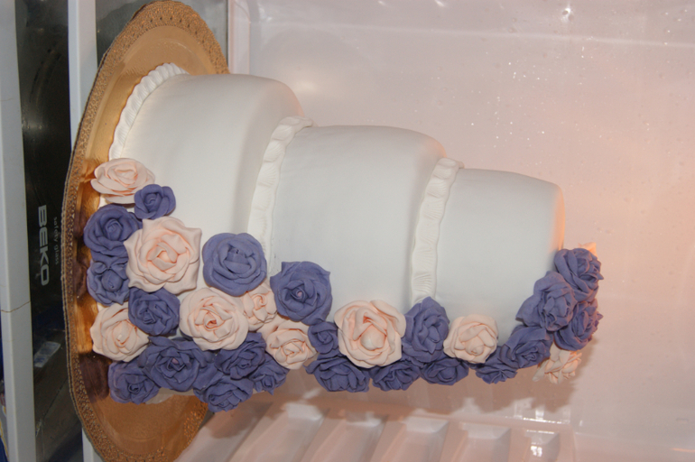 Скажу сразу,это не только мой первый свадебный торт,но и первый трёхъярусный, первый с таким большим весом - 7,6 кг! и первый раз я розы лепила.