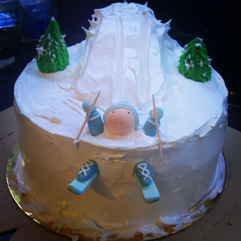 Спасибо!Даже не знаю, что ответить. Сначала я изучила технологию: торт->картошка->ганаш->мастика. Нашла рецепт ганаша, где-то в интернете посмотрела как надо выравнивать и все. Потом я обычно смотрю на картинку и думаю как это сделать, если не знаю как делать какие-то элементы, просто в гугле ищу. Торты снеговик и лыжник скопированы по картинке, остальное мои фантазии на тему заказчика:)