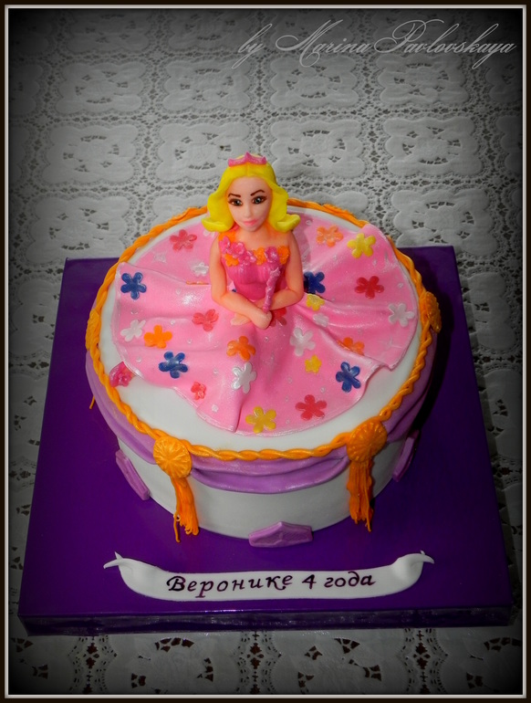 Торты детскиеОх, и намучилась я с этой куколкой... Лицо никак не поддавалось раскраске... Переделывала раз 5, хотя лицо сделано при помощи молда (ну чего страдать если он есть, правда?)))). На куклу ушло 8 часов