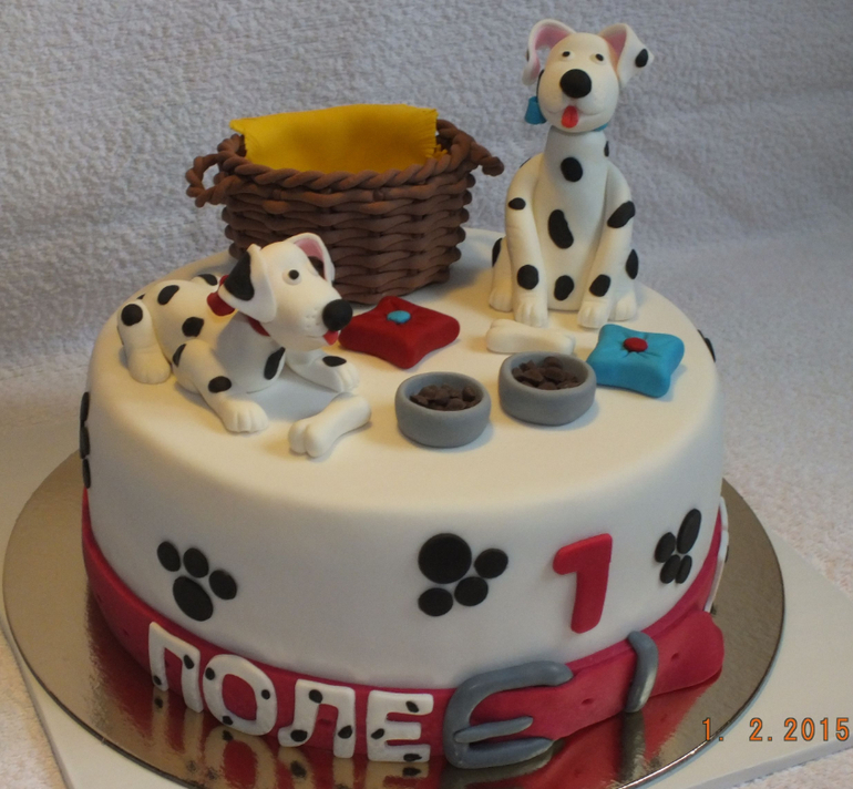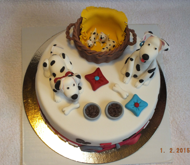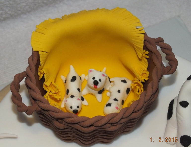 Спасибо! Именинница хотела много собак, но с ее мамой договорились на одну собаку в корзинке. Корзинка в итоге получилась высокая, но довольно узкая и собака в ней смотрелась мягко говоря не очень хорошо, в итоге родился такой тортик. Именинница была счастлива.