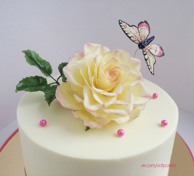 Соня, тортик нежный и очень стильный)))) ничего лишнего, роза и бобочка шикарные))))))))))