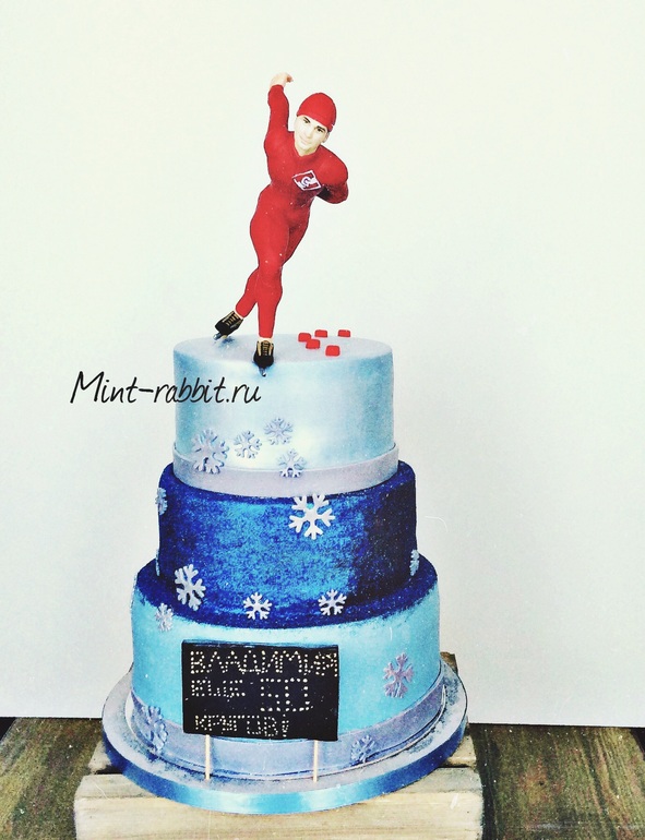 Торты для мужчинУх, трогательный подарок :) этот торт заказали на 50-летие родственники в прошлом конькобежца. Они находятся в другом городе, и устроили ему такой сюрприз :) 9 кг, в нижнем ярусе шоколадный шифоновый бисквит с миндальной пропиткой, прослойкой грильяж и карамельным кремом. В среднем верхнем- шоколад и мнооого вишни :)