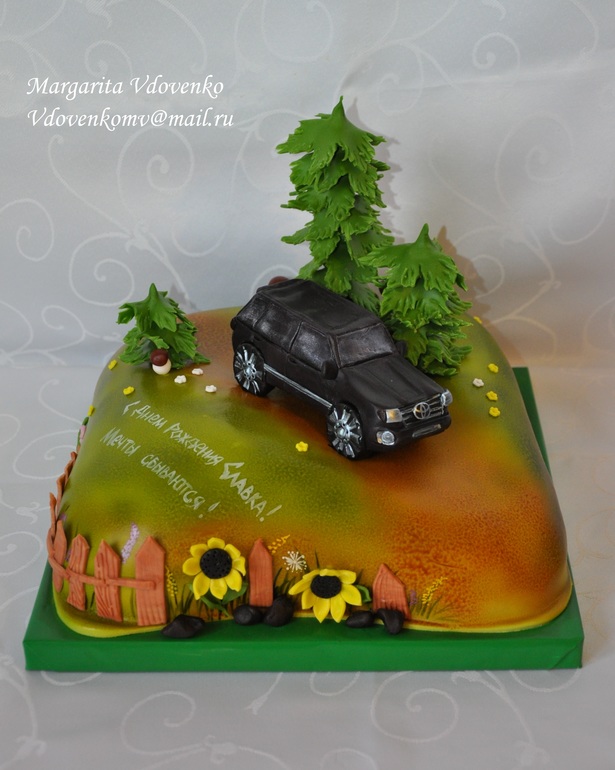 Классный торт! А машинка из мастики целиком или внутри тоже торт?