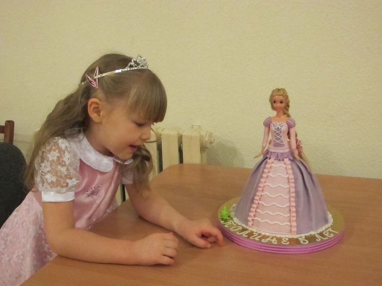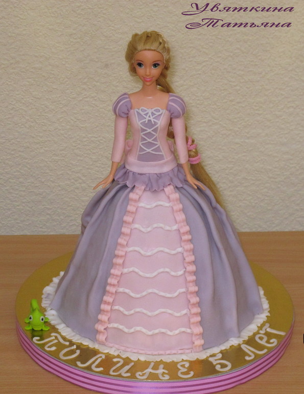 Торты детскиеСразу после Нового года поздравляли нашу маленькую принцессу с Днем Рождения! т.к. времени было мало, вся подготовка была на мне, + торт, то потихоньку склонила ее к тому, чтобы использовать настоящую куколку в торт, а не лепить самой:))) Опыт для меня потрясающий, почувствовала себя чуть-чуть конструктором (юбку сделать нужной высоты и объема) и дизайнером (хотя у Рапунцель с платьем не поиграешь, надо же,чтоб как в мульте было!:)