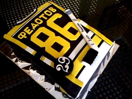Всю дорогу домой визжала от восторга , как поросенок !!! Таааак КРУТО !!! Такой афигенный торт )) Все аккуратно , копия его майки один в один , все детали , даж на клюшке bauer !! )
