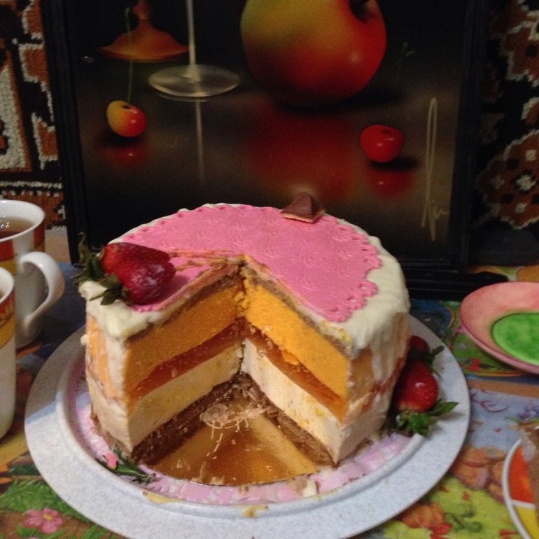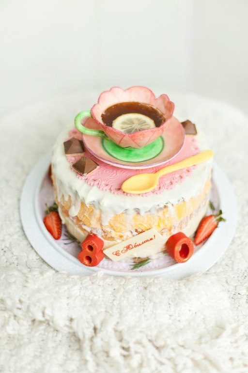 Украшение тортов кремом,шоколадом, фруктамиТортик на юбилей мамы во втором варианте.