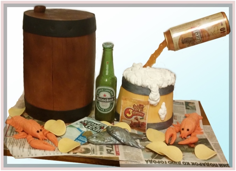 Торты для мужчинВес - 12 кг. В бочке - Три шоколада и сливочно-творожный, в кружке - Птичье молоко