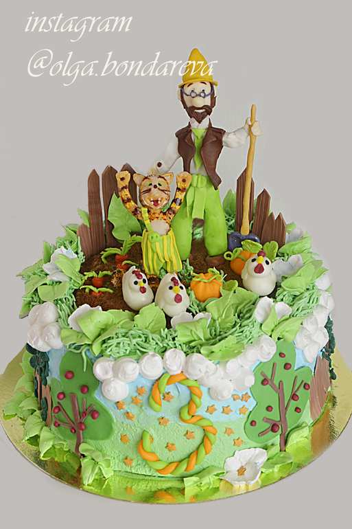 Это наш тортик!!! Теперь гости разошлись и я залезла написать слова благодарности! Оленька, спасибо Вам огромное за ту радость, которую вы доставили имениннику и всем гостям. Сходство с героями книги потрясающее, но не в этом главная особенность нашего праздничного торта! Главное — это праздничное настроение, добродушность героев и точно переданная атмосфера нашей любимой книги "Переполох в огороде". Бабушка наша, знаменитая огородница, была в восторге от огорода!