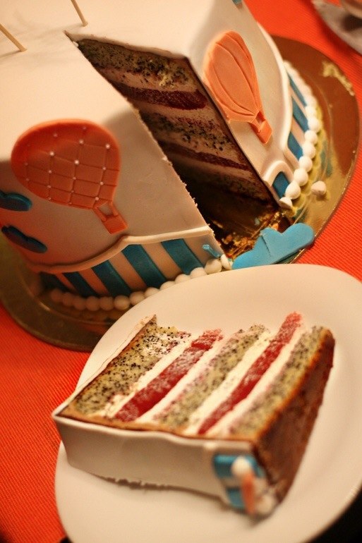 Торт на вечеринку в стиле Ballon Party. Сверху был украшен именинницей растяжечкой с именами. Клубничный поцелуй, вес не помню, больше 3,5 кг)))