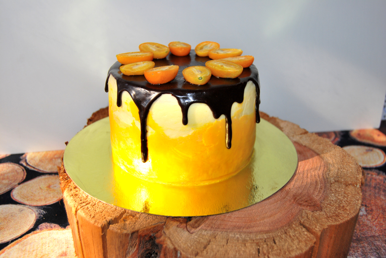 В разрезе не было ничего особенного, коржи, белый крем и чуток выглядывали оранжевые апельсины.