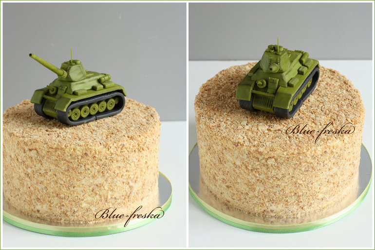 Ааа, это же наш торт с танчиком! Инночка, еще и здесь скажу большое спасибо за него, какой же он невероятно вкусный, тающий во рту, не приторный, а ровно настолько сладкий, насколько от него ожидаешь)) ну и танчик — мечта и восторг наших мужчин!