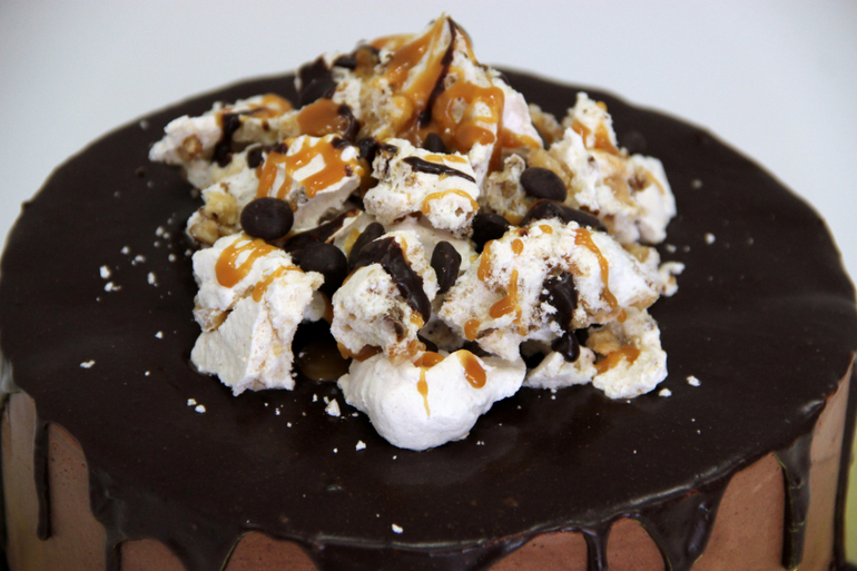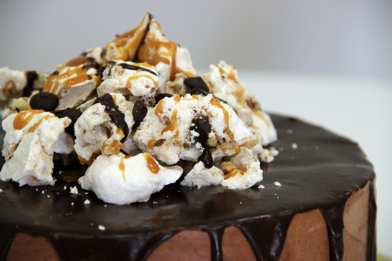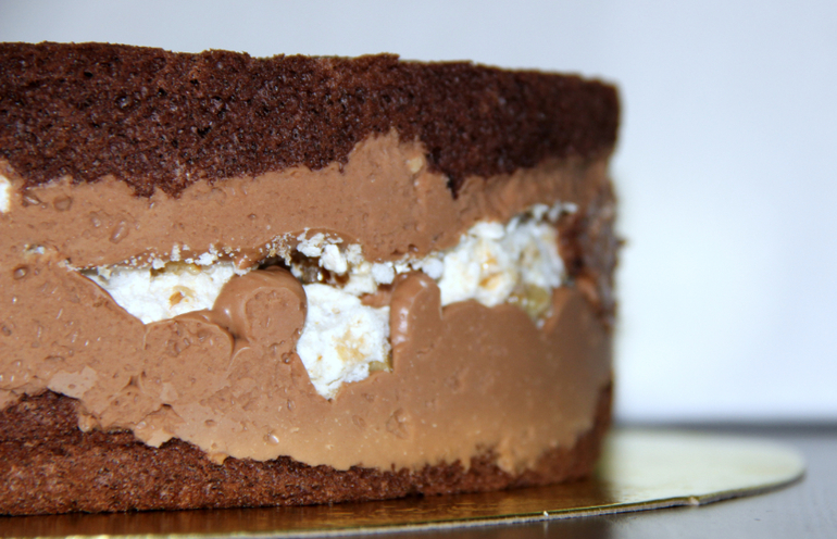 Украшение тортов кремом,шоколадом, фруктамиШоколадный бисквит, безе с грецким орехом,шоколадный крем
