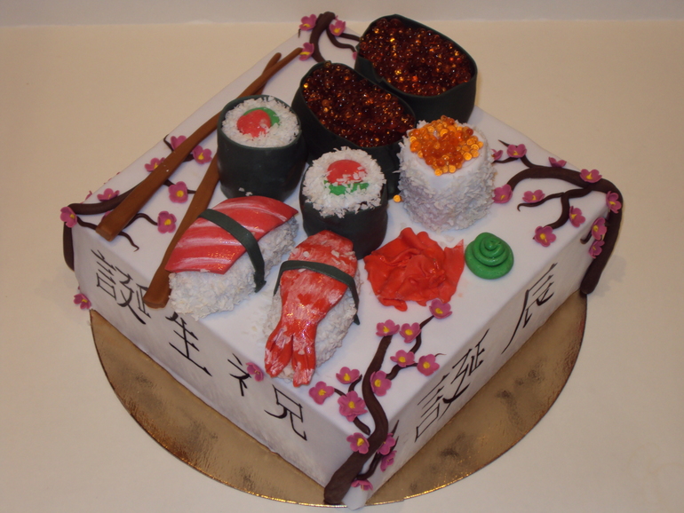 Торты тематическиеВот такой вот у меня торт "пражский" получился, для тематической вечеринки). В роллах пирожное картошка.