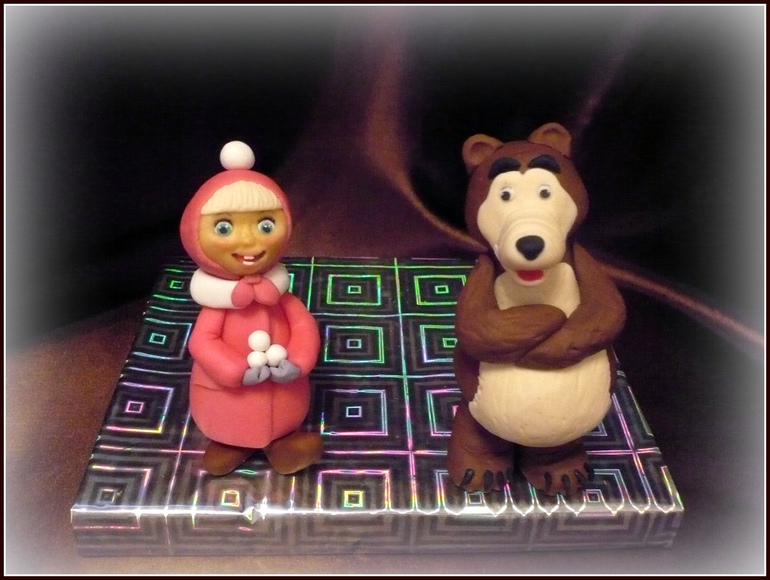 Фигурки и цветы из мастикиФигурки Маши и медведя из м/ф.