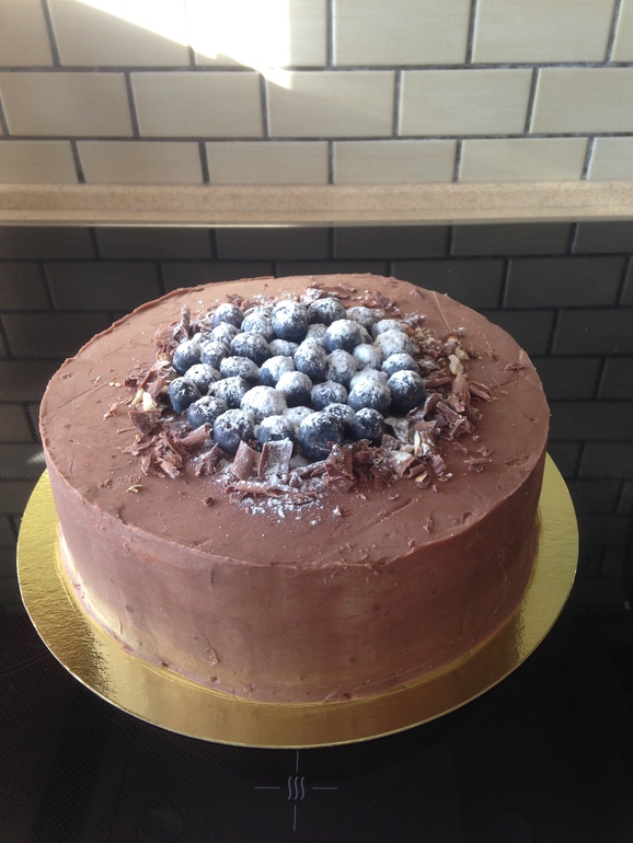 Дв! Сам торт покрыт не шокомуссом, а просто шоколадно-сливочным кремом! Покрыла торт кремом и пока он не застыл положила голубику, вот и все))
