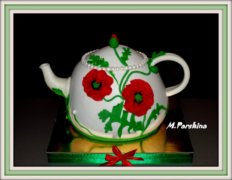 Чайник для свекрови,у которой день рождения 9 марта,но отмечаем почти всегда 8 марта.Начинка медовик с ананасом и орехом.Вес 3,6 кг.