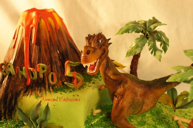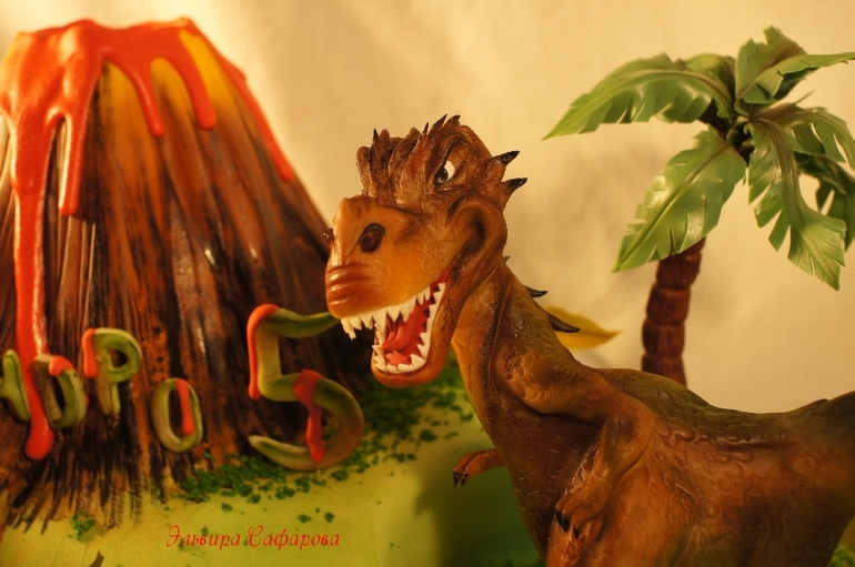 Крутой динозавр, очень реалистичный ! Он полностью из мастики или внутри скульптурная масса? Какая у него высота и из чего лепили?