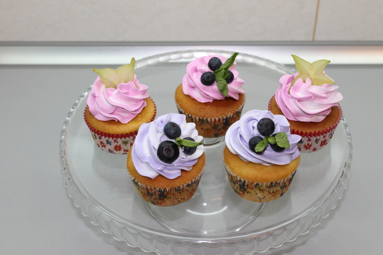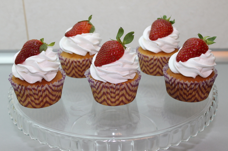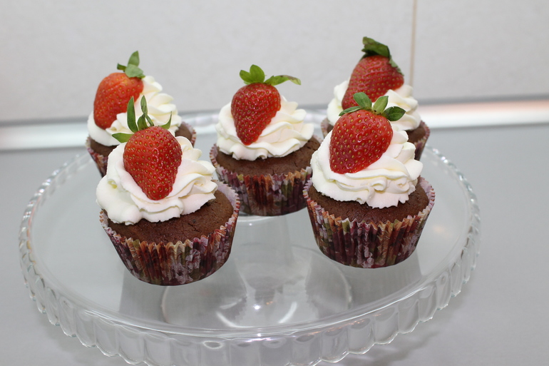 Ванильные капкейки с шоколадным ганашем, меренга, клубника