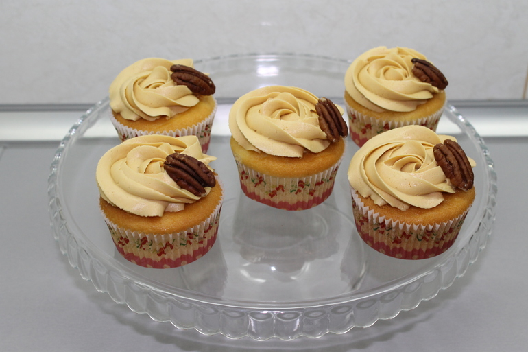 Ванильные капкейки с шоколадно-кофейным ганашем, карамельно-сливочным кремом и орехом пекан