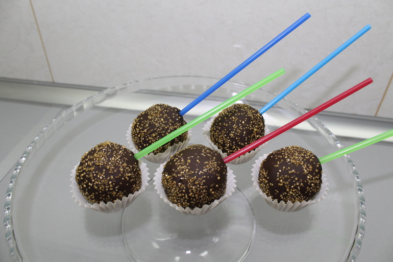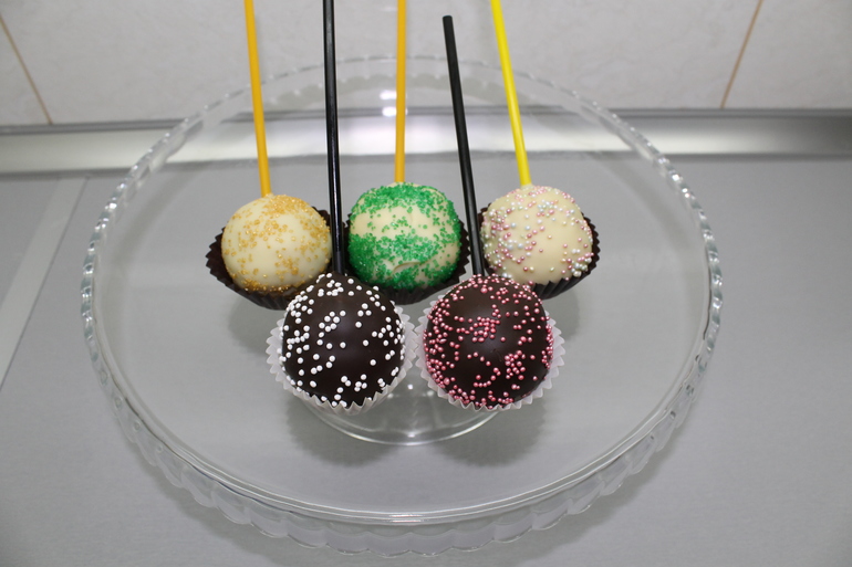 Ванильные кекпопсы с карамельно-сливочным кремом в белом шоколаде