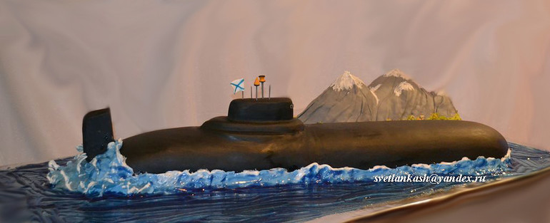 Я делала похожий торт и море было из крема, но можно вокруг изомальтом залить. Глянь у меня торт подводную лодку и пиратский корабль. Крем был мокрое безе, окраска аэром и просто вмешиванием красителя. Www.mashintortik.jimdo.com. В детских и в мужских тортах (вроде)