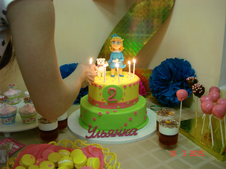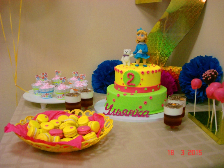 вот и я организовала сладий стол для своей младшей дочки. трудности были с тем что некоторые гости были постящие. вот желейку в стаканчиках с раститильными сливами и капкейки на яблочном соке с наполнителем абрикосовым джемом и теми же сливками сделала для поста. а торт макаруны и кейкпопсы для всех остальных.так закрутилась с готовкой и сладкого и всего остального что фотографировали очень мало. вот что у меня получилось.