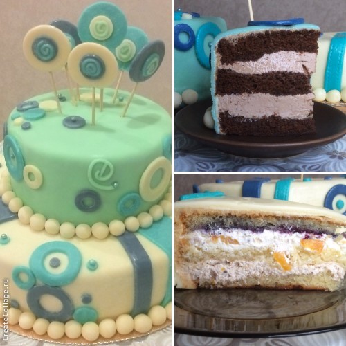 Проба пераДевочки, это моя давняя хотелка, увидела тортик в интернете и загорелась. Так было интересно его делать. До этого было только два мастичных торта, на годовасие своему шилопопу и на день рождения любимому мужу. А сегодня 83 года моей бабушке. Но это я отвлеклась. Вернусь к торту вес 5 кг, внизу ванильный бисквит на кипятке, сливки персики, нежный крем из бананов, черничный джем, верхний корж прага, мастика молочная самодельная. Почему то так вышло, что эти тортики я пропитала особенно хорошо, при сборке чуть не рыдала, совсем уж было отчаилась, думаю расползется все на фиг, такое мокрое все было. Я люблю когда пропитки много, но не учла, что торт то многоуровневый. Про декор отдельная песня, не имея никаких приспособлений и инструментов не легко добиться идеальной формы. Ну тут говорится, голь на выдумку хитра, в ход пошли рюмки и даже наперсток пригодился. Закончила я его к 5 утра, шарики по низу уже даже и не колибровались. Тортик отправился в холодильник, а я спать. С утра первым делом, ну как он, открыв холодильник ожидала самого худшего, ан нет, все в норме. Я собой горжусь. у меня получилось!!! Кому интересно, добро пожаловать под кат, фото тортика и разрез.