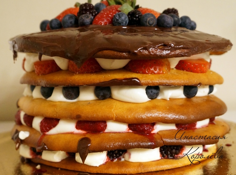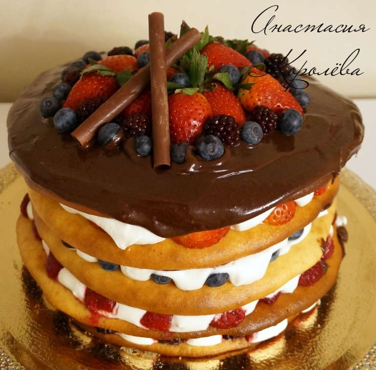 Украшение тортов кремом,шоколадом, фруктамиМолочная девочка со сливочно-сметанным кремом и ягодами) Ммм...какая ж это вкуснота - просто божественно вкусно) На вид, конечно, можно было и поровнее)))